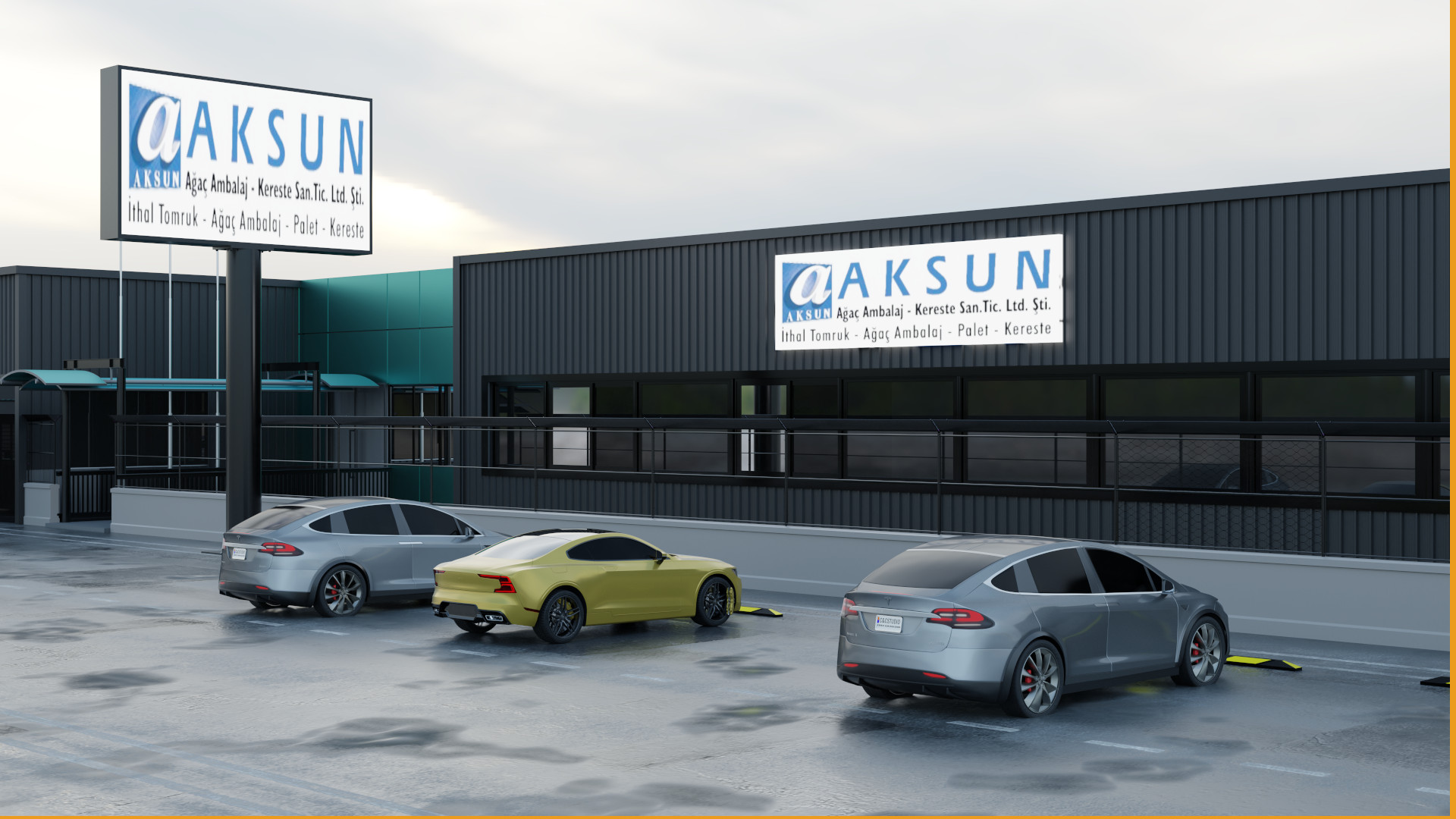 Öncelikle müşterimizin fabrikasının dış cephe ölçüleri çıkartılıp, tasarım sürecine geçildi. Tasarımda müşterimizin zevkine ve ihtiyacına göre renk çalışması ve yerleşim yapıldı.