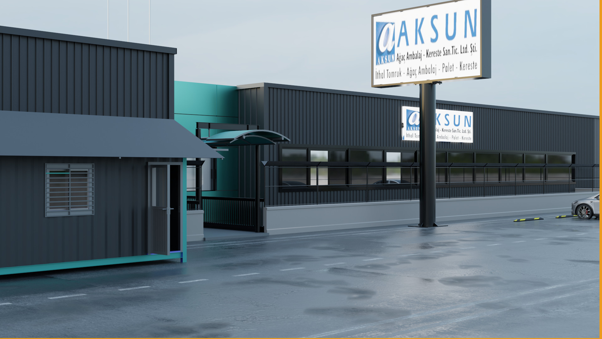Fabrika dış alana araç otopark uygulaması yapıldı. Güvenlik için konteyner konulup, tasarım süreci tamamlandı.
