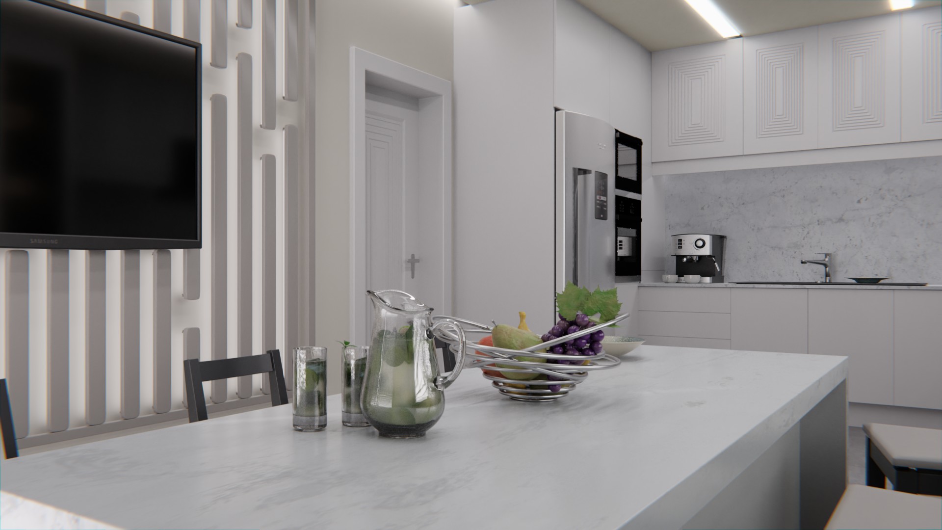 - Tezgahlar arasındaki boşluk – özellikle koridor tipi bir mutfak düzeninde iki cihaz birbirinin karşısındaysa minimum 1.200 mm