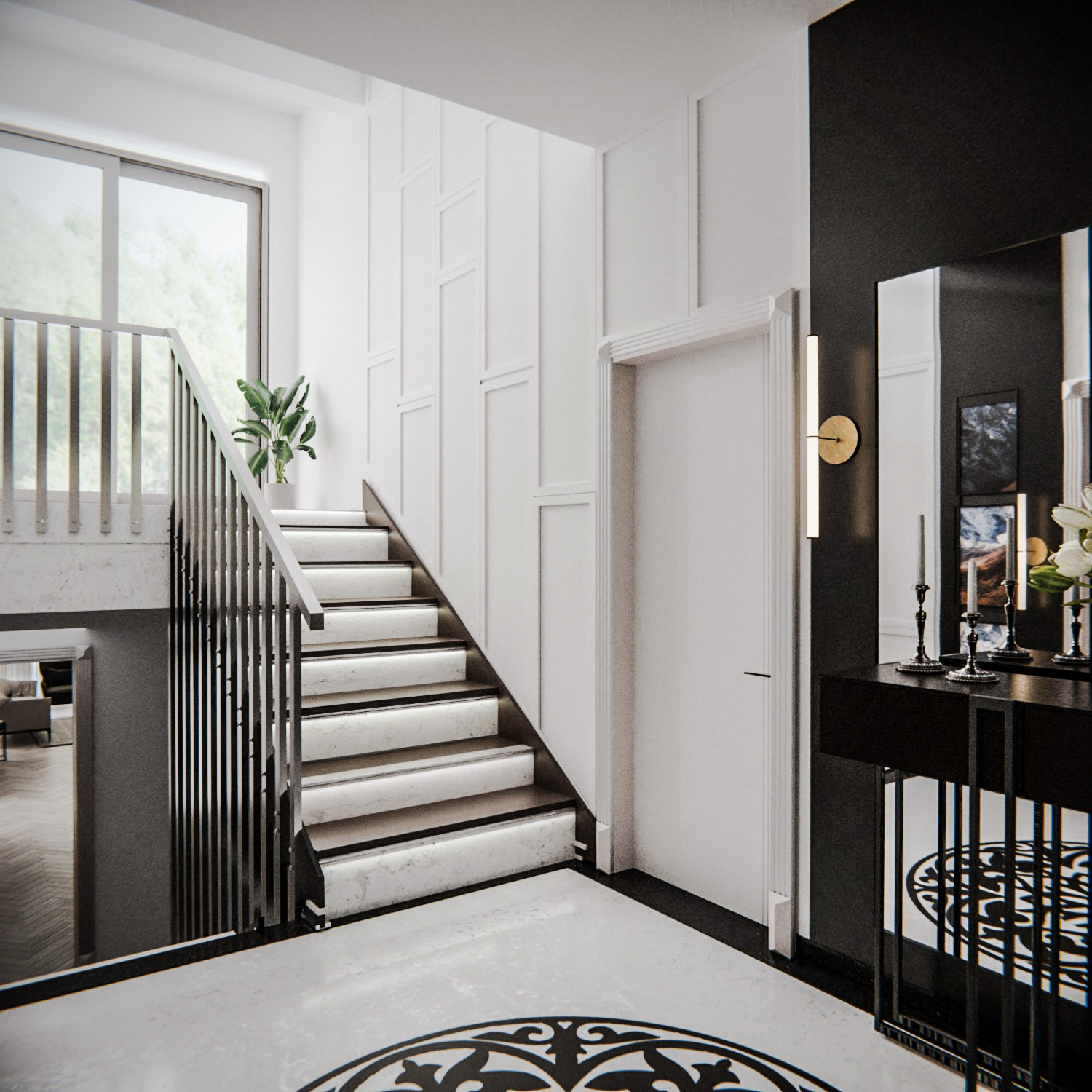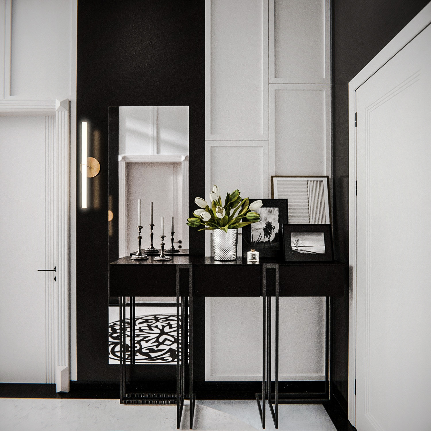 Benna Interior olarak, Bursa/Bademli'de 2022 yılında tamamladığımız villa antre dekorasyonu projemizle, modern ve şık bir giriş alanı tasarladık. Bu projede, siyah ve beyaz renklerin dengeli kullanımıyla estetik bir görünüm elde etmeyi hedefledik.