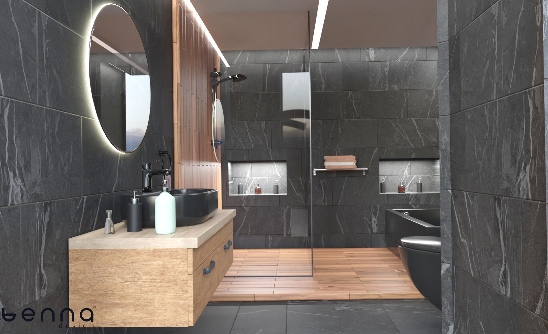 Tüm tasarım, mobilya imalat süreçleri ve tadilat işlemleri Benna Interior bünyesinde yapılmıştır. Sizler de banyo dekorasyon ihtiyaçlarınız için bizimle iletişime geçebilirsiniz.
